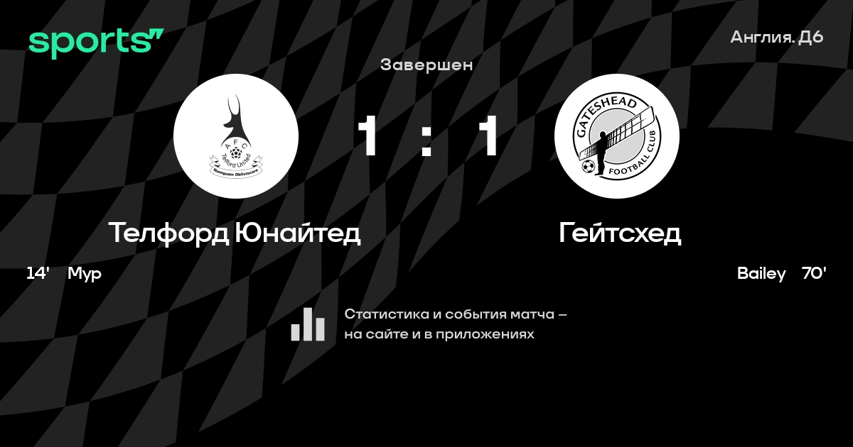Телфорд Юнайтед – Гейтсхед: Гейтсхед не проигрывает в 9 из 11 последних матчей против этого соперника
