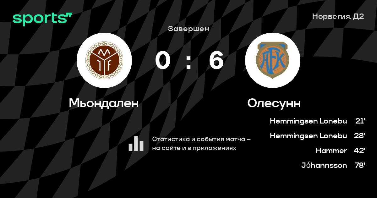 Мьондален – Олесунн: Мьондален не проигрывает в 6 последних матчах против этого соперника