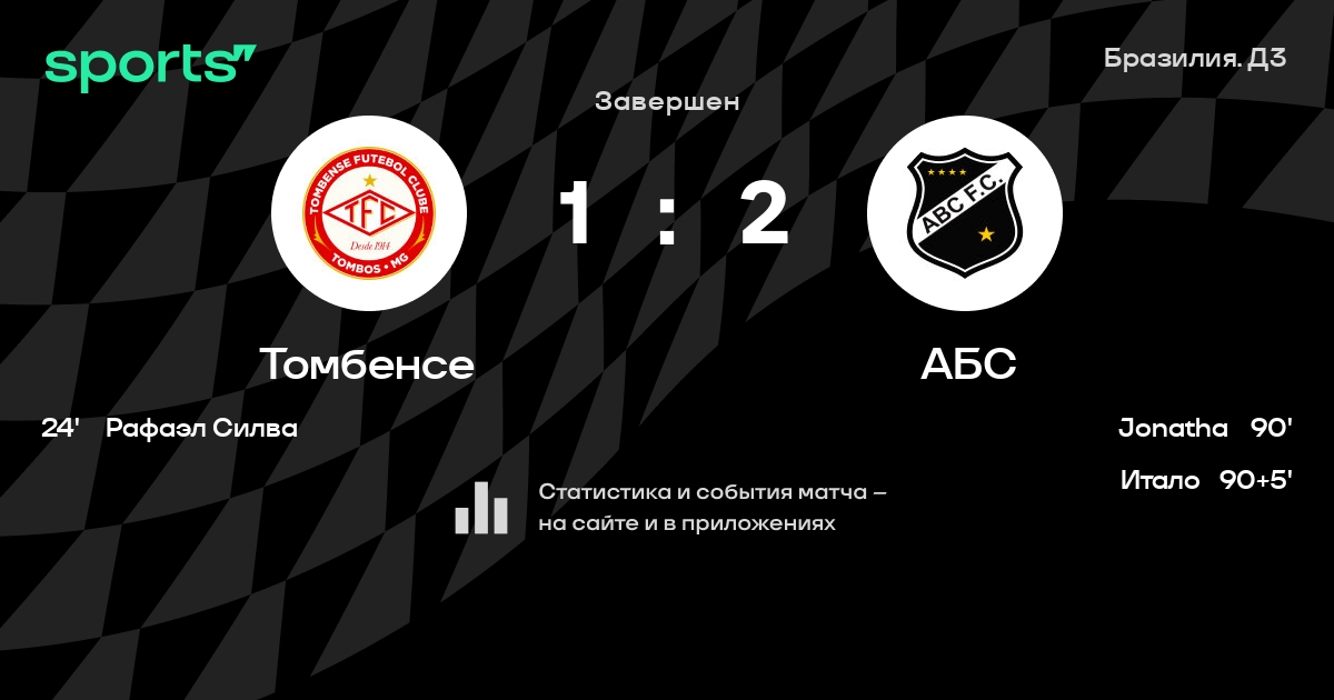 Результат прошлой игры в турнире «Серия C»: Понте Прета – Томбенсе 1:0. После 11 туров Томбенсе набирает 11 очков и занимает 14 место в турнире. Лучший бомбардир команды – Рафаэл: он забил 4 в 9 матчах. Томбенсе не может выиграть в 7 последних матчах в рамках турнира «Серия C». В 3 последних матчах в турнире «Серия C» Томбенсе обязательно забивает. В последних 5 играх Томбенсе забивает 1 голов. В последних 5 играх Томбенсе пропускает 5 голов.