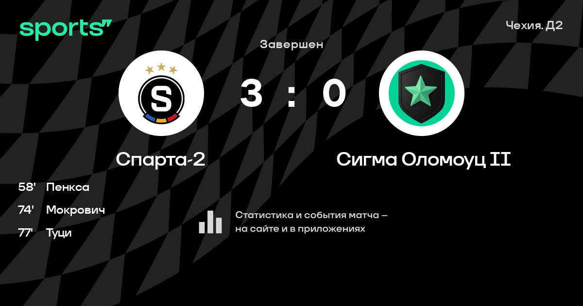 Спарта-2 – Сигма Оломоуц II: Сигма Оломоуц II побеждает в 6 последних очных матчах