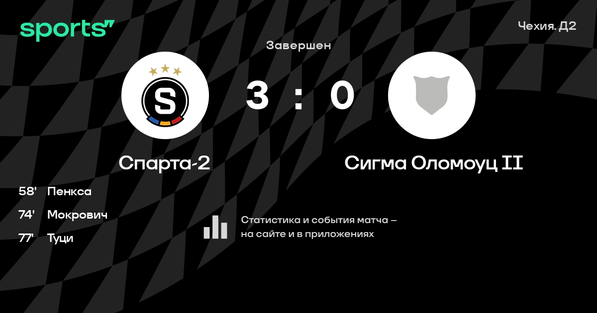 Спарта-2 – Сигма Оломоуц II: Сигма Оломоуц II побеждает в 6 последних очных матчах
