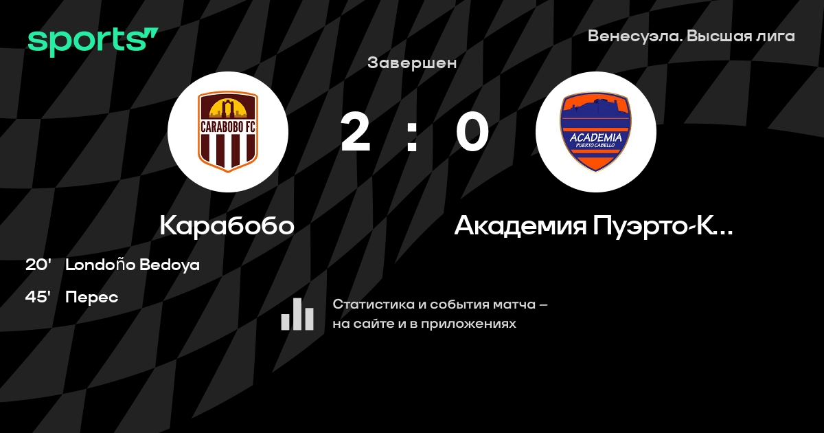Карабобо – Академия Пуэрто-Кабельо: Академия Пуэрто-Кабельо не проигрывает в 5 из 7 последних матчей против этого соперника в гостях