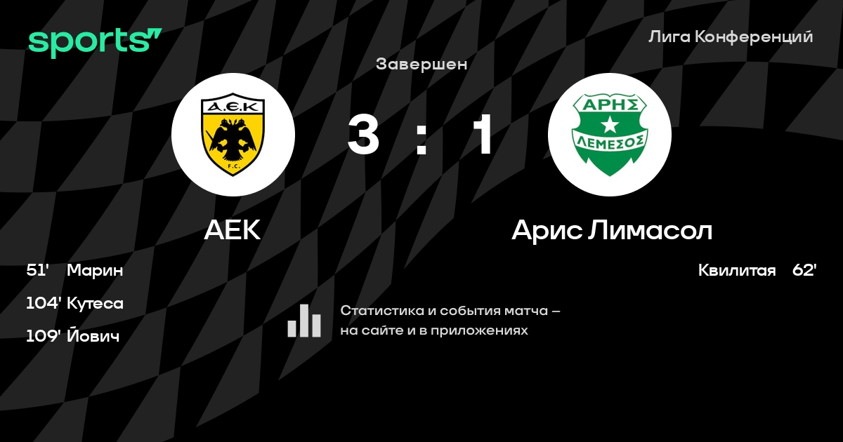 Арис Лимасол не проигрывает в 3 последних матчах в рамках турнира «Лига Конференций». В 3 последних матчах в турнире «Лига Конференций» Арис Лимасол обязательно забивает. В последних 5 играх Арис Лимасол забивает 9 голов. В последних 5 играх Арис Лимасол пропускает 9 голов.