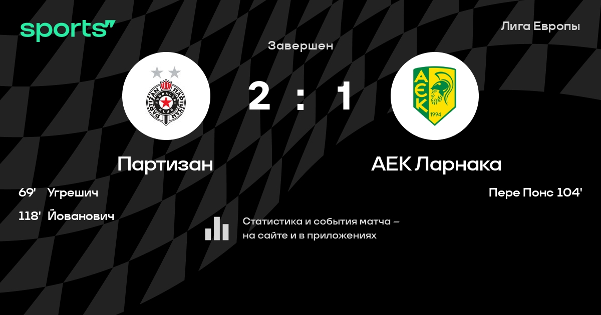 Результат прошлой игры в турнире «Лига Европы»: АЕК Ларнака – Партизан 1:0. В последних 5 играх Партизан забивает 6 голов. В последних 5 играх Партизан пропускает 11 голов.