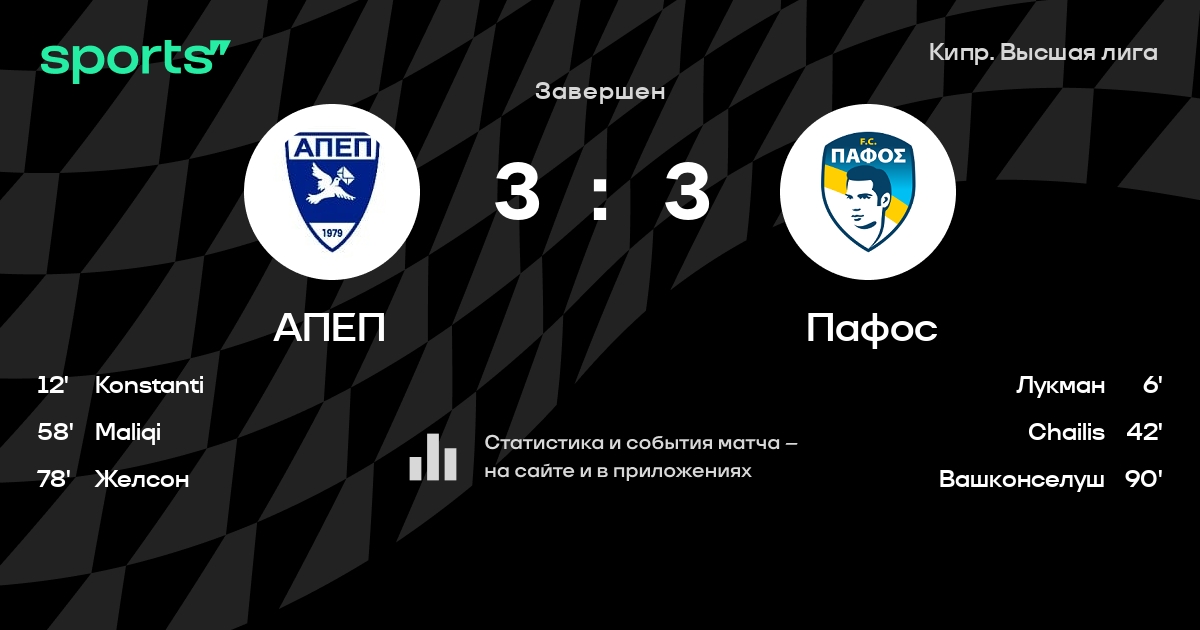 Николовски - Андерсон до О, Сичоне, Nunes Coelho, Demetriou, Мишаэлоф - Бесарес, Ba, Лукман - Chailis, Тикинью