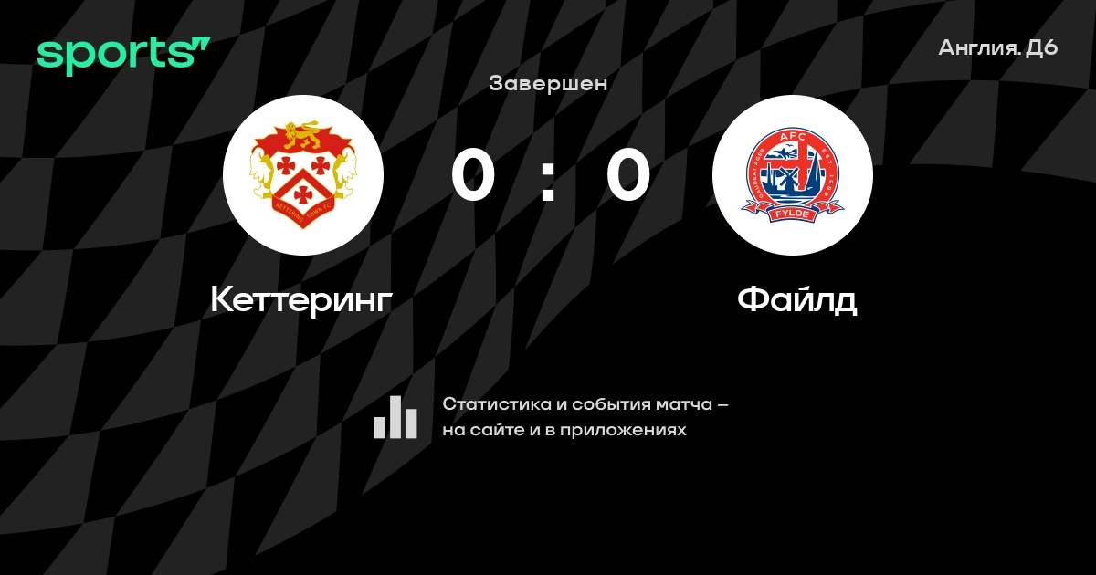Результат прошлой игры в турнире «Д6. Национальная конференция»: Кеттеринг – Бакстон 0:0. После 29 туров Кеттеринг набирает 33 очков и занимает 19 место в турнире. Лучший бомбардир команды – Тайрон Льютуэйт: он забил 3 в 3 матчах. Кеттеринг не проигрывает в 3 последних матчах в рамках турнира «Д6. Национальная конференция». В последних 5 играх Кеттеринг забивает 7 голов. В последних 5 играх Кеттеринг пропускает 5 голов.