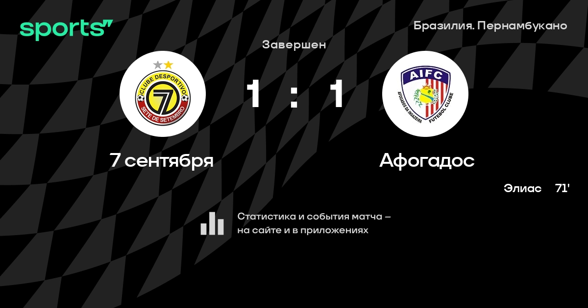 Результат прошлой игры в турнире «Бразилия. Пернамбукано»: Афогадос – Vera Cruz FC (Vitória de Santo Antão) 3:0. В последних 5 играх Афогадос забивает 9 голов. В последних 5 играх Афогадос пропускает 7 голов.