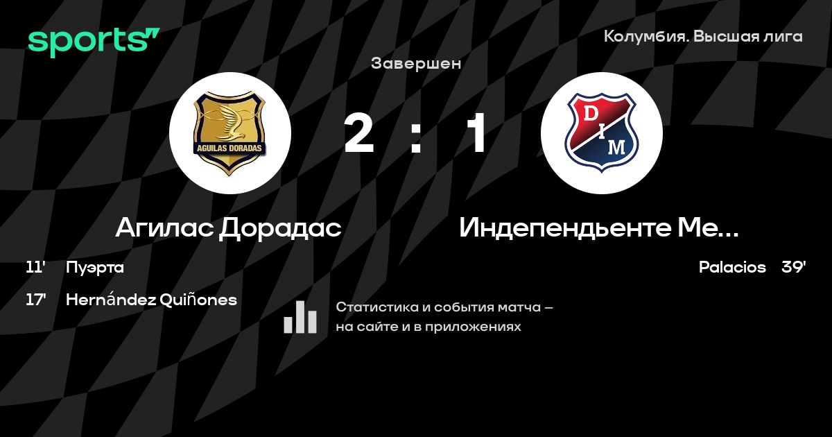 Агилас Дорадас – Индепендьенте Медельин: Индепендьенте Медельин не проигрывает в 6 последних матчах против этого соперника