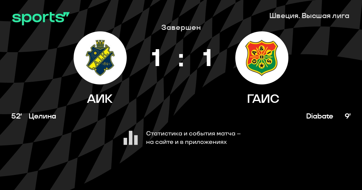 Результат прошлой игры в турнире «Аллсвенскан»: Норчепинг – АИК 3:1. После 24 туров АИК набирает 43 очков и занимает 3 место в турнире. Лучший бомбардир команды – Йохан Хове: он забил 8 в 24 матчах. В 5 последних матчах в турнире «Аллсвенскан» АИК обязательно забивает. АИК пропускает в 3 последних матчах в турнире «Аллсвенскан». В последних 5 играх АИК забивает 13 голов. В последних 5 играх АИК пропускает 5 голов.
