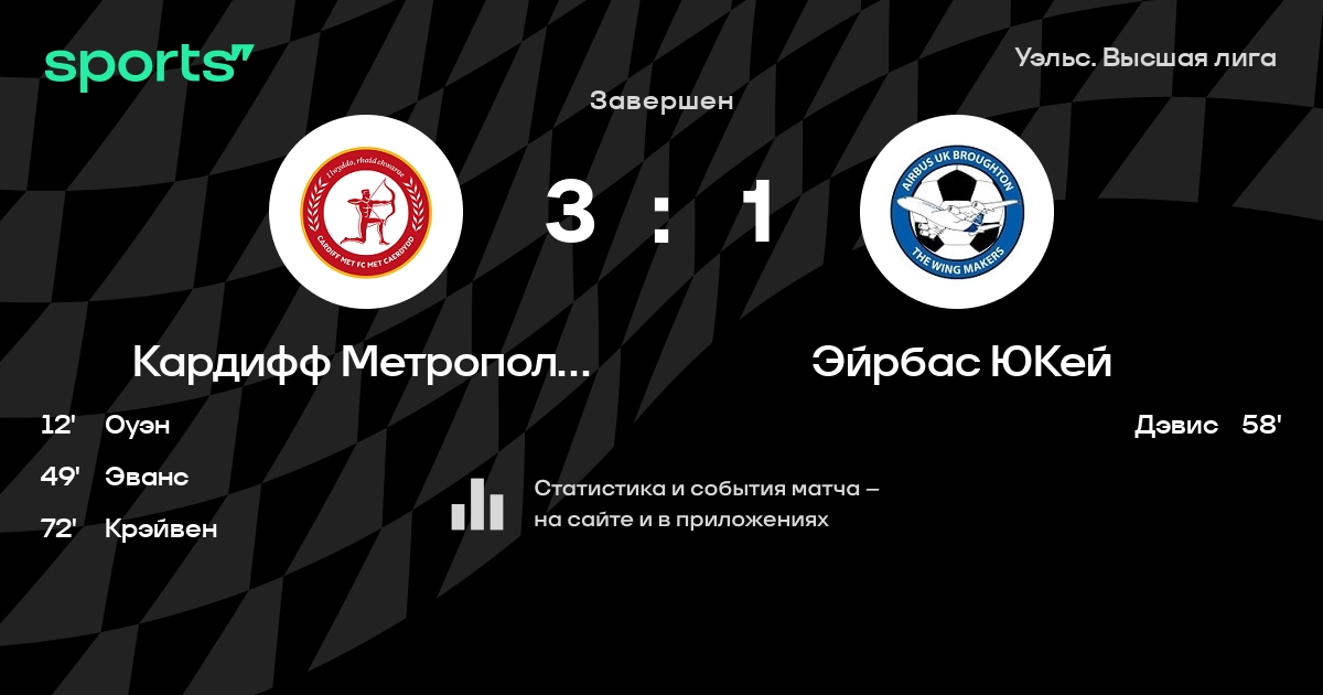 Кардифф Метрополитан – Эйрбас ЮКей: Кардифф Метрополитан забивает в 5 последних матчах против этого соперника