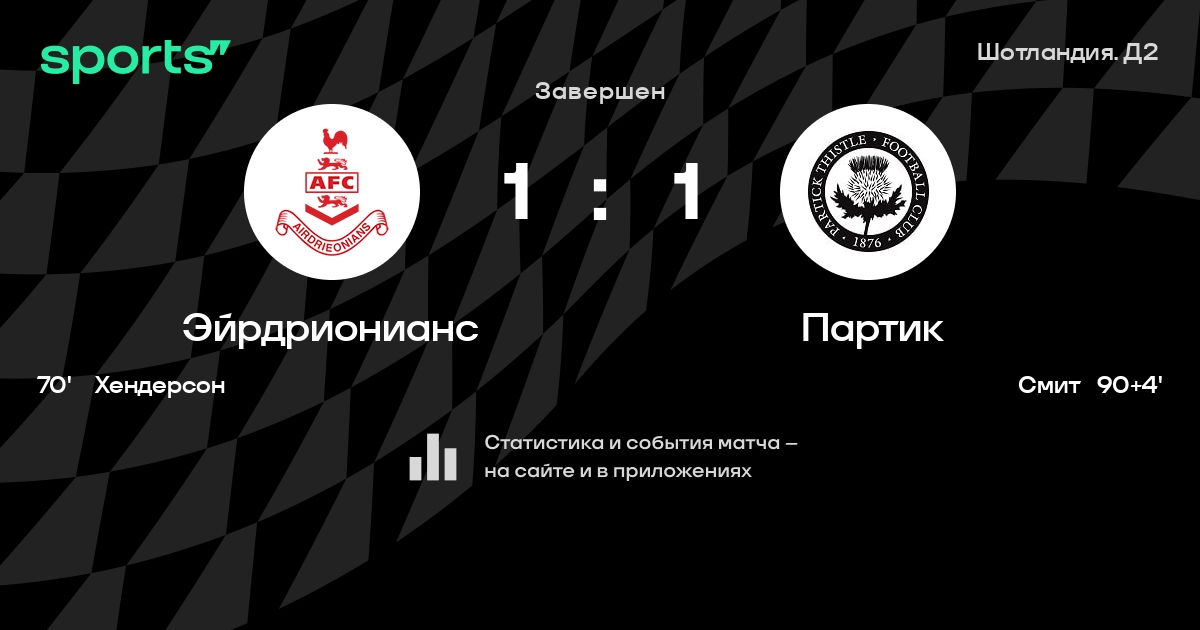Эйрдрионианс – Партик: Партик забивает в 22 последних матчах против этого соперника