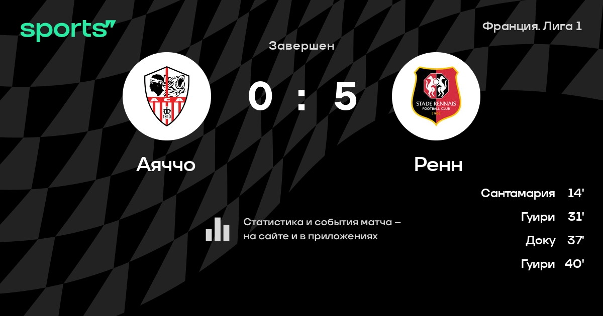 Аяччо – Ренн: Ренн не проигрывает в 5 из 7 последних матчей против этого соперника