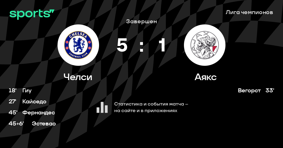 Лига чемпионов: шансы «Челси» и «Аякса» на победу в матче 3 тура