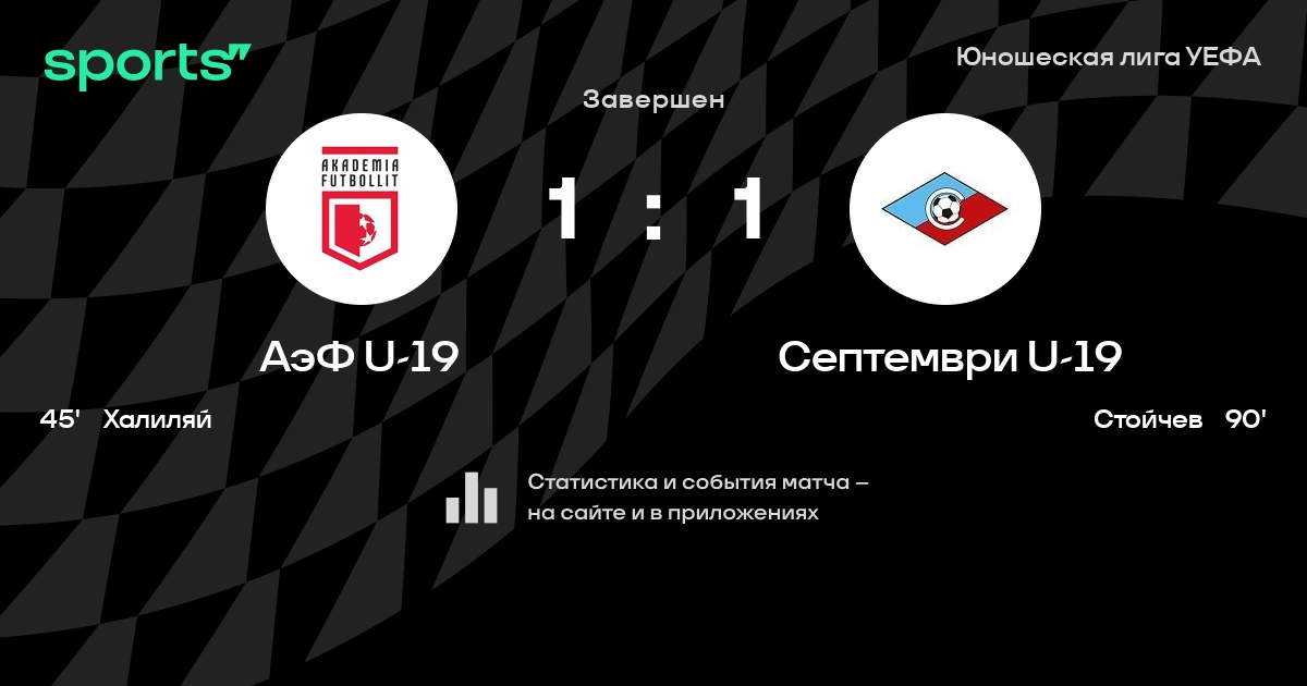 Результат прошлой игры в турнире «Юношеская лига УЕФА»: Септември U-19 – АэФ U-19 3:0.