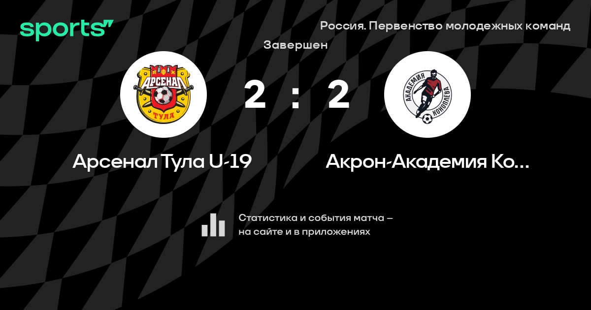 Арсенал Тула U-19 – Akademiya Konoplev U19: Арсенал Тула U-19 не пропускает в 3 последних матчах против этого соперника