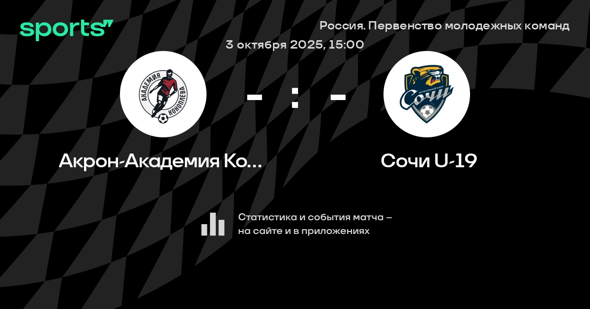 Акрон-Академия Коноплева U-19 – Сочи U-19: Сочи U-19 забивает в 4 последних матчах против этого соперника