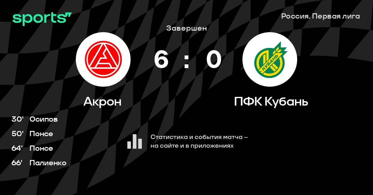 Акрон – Кубань: Акрон не проигрывает в 5 из 6 последних матчей против этого соперника