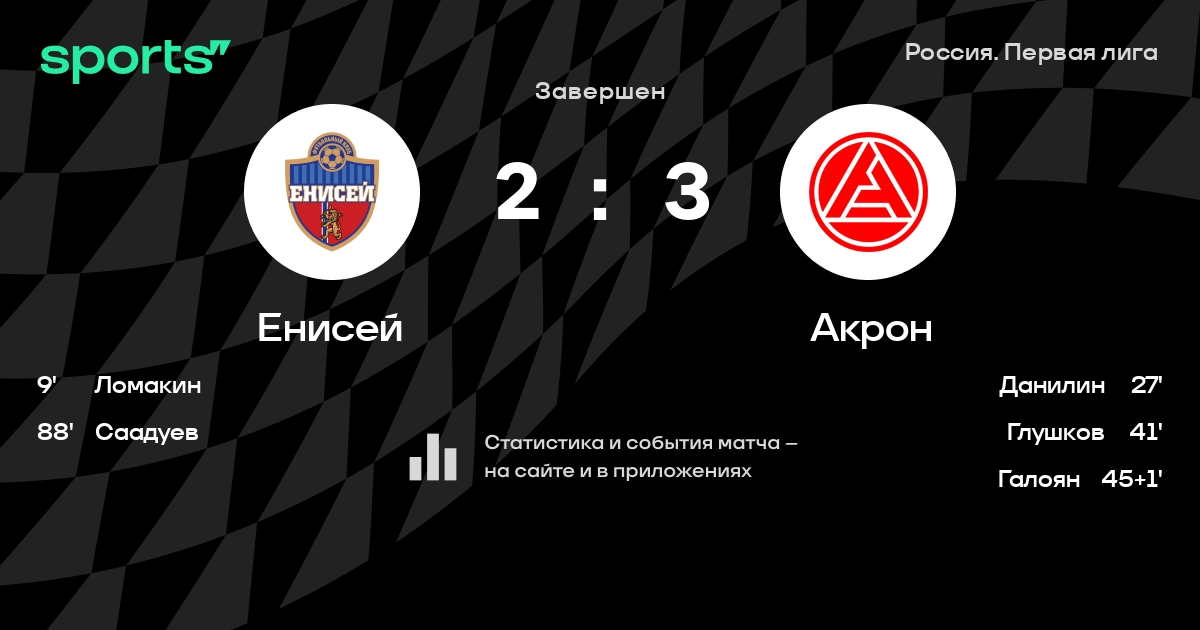 Енисей – Акрон: Акрон забивает в 6 из 7 последних матчей против этого соперника