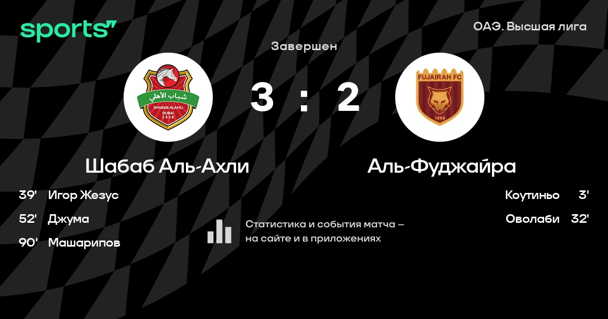 Трансляция Шабаб Аль-Ахли - Аль-Фуджайра
