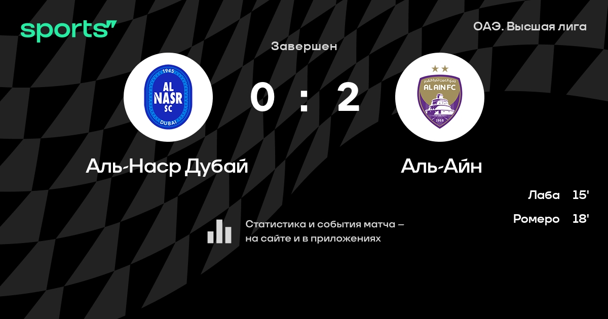 Аль-Наср Дубай – Аль-Айн: Аль-Айн не проигрывает в 7 из 8 последних матчей против этого соперника в гостях в турнире «Высшая лига»