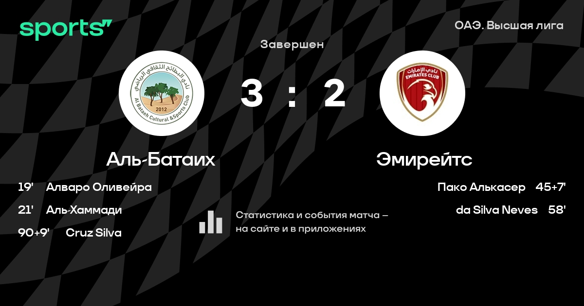Аль-Батаих – Эмирейтс: Аль-Батаих забивает в 4 последних матчах против этого соперника