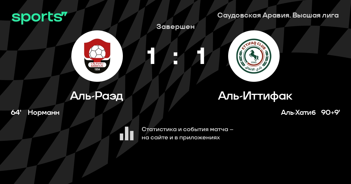 Аль-Раэд – Аль-Иттифак: Аль-Раэд не проигрывает в 6 из 8 последних матчей против этого соперника