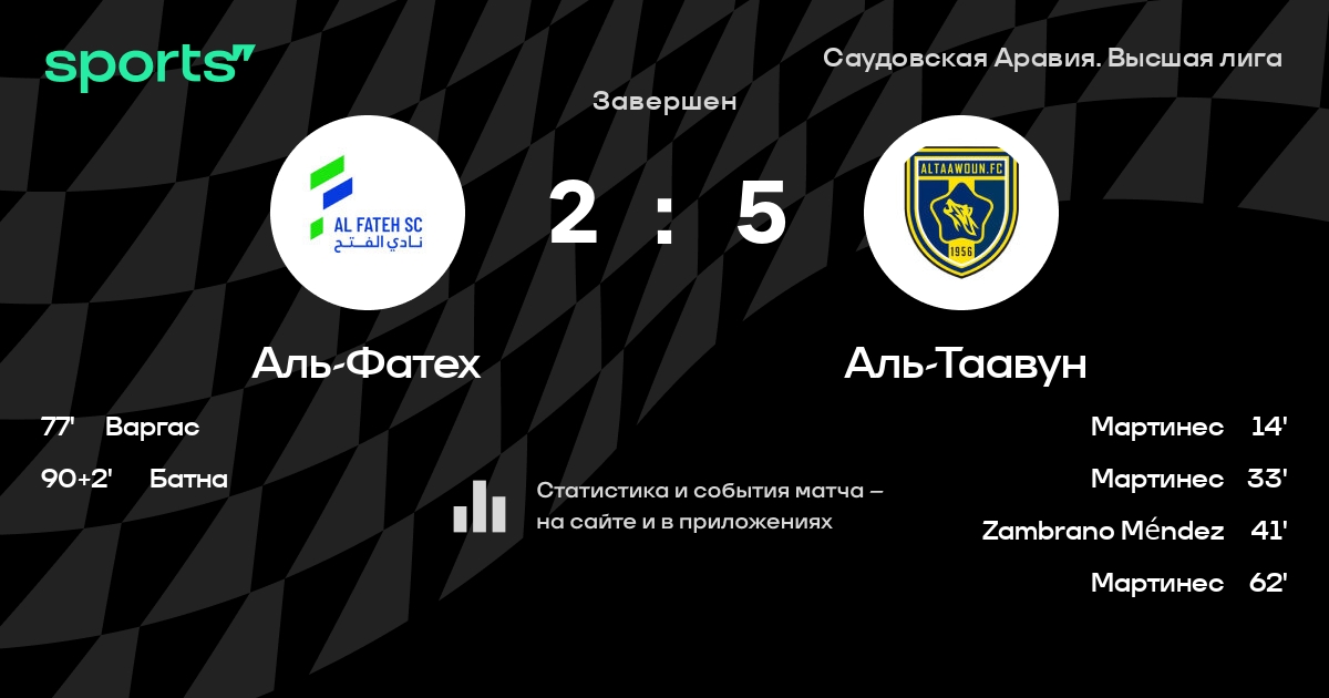 Аль-Фатех – Аль-Таавун: коэффициенты