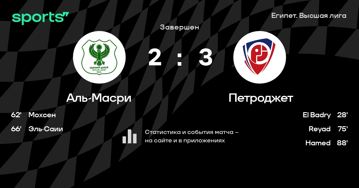 Аль-Масри – Петроджет: Аль-Масри забивает в 8 последних матчах против этого соперника