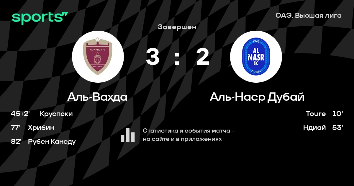 Аль-Вахда – Аль-Наср Дубай: Аль-Вахда не проигрывает в 12 последних матчах против этого соперника