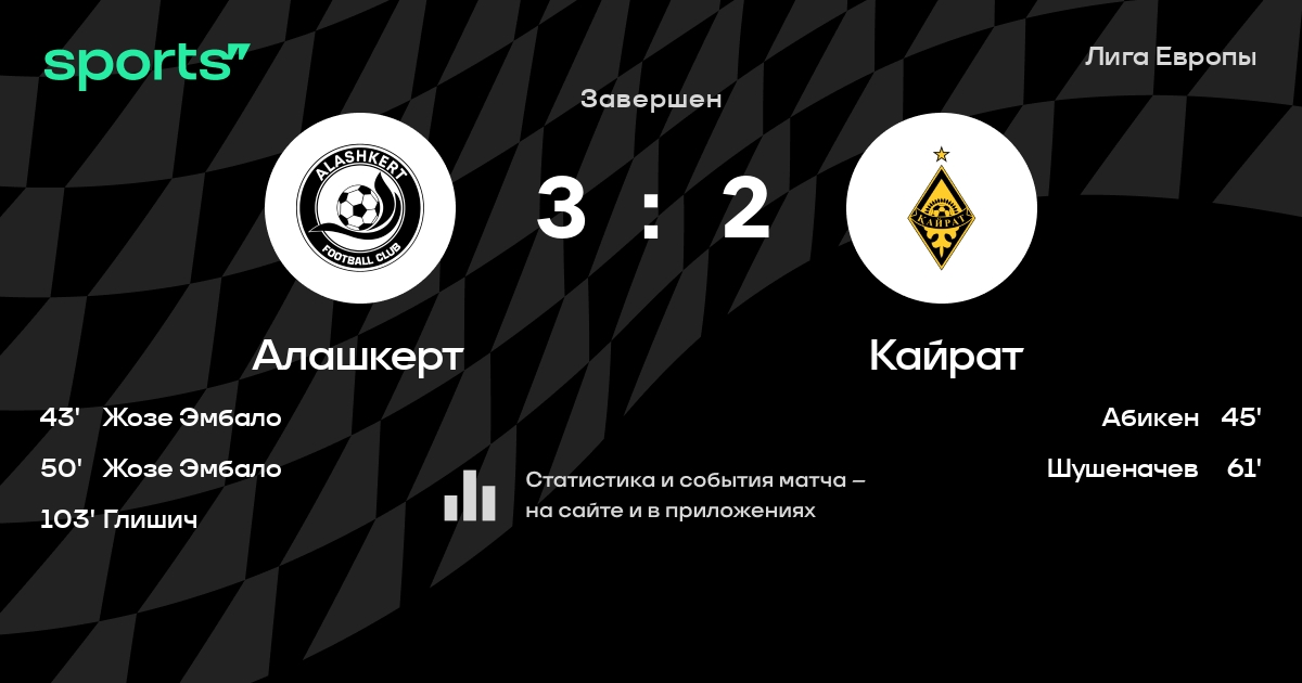 «Кайрат» и «Алашкерт» не забили голов в ЛЕ, «Астана» вырвала ничью в Лиге конференций, «Тобол» проиграл, «Шахтер» и «Колос» сыграли 0:0. Итоги первых матчей