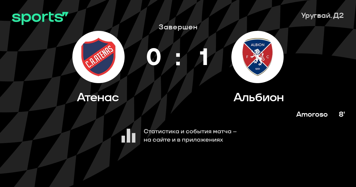 Результат прошлой игры в турнире «Сегунда»: Атенас – Феникс 1:0. После 19 туров Атенас набирает 32 очков и занимает 4 место в турнире. Лучший бомбардир команды – Рамиро Кинтана: он забил 5 в 13 матчах. Атенас не проигрывает в 3 последних матчах в рамках турнира «Сегунда». Альбион имеет в активе больше всех побед в турнире – 12. В 3 последних матчах в турнире «Сегунда» Атенас обязательно забивает. В последних 5 играх Атенас забивает 4 голов. В последних 5 играх Атенас пропускает 4 голов.