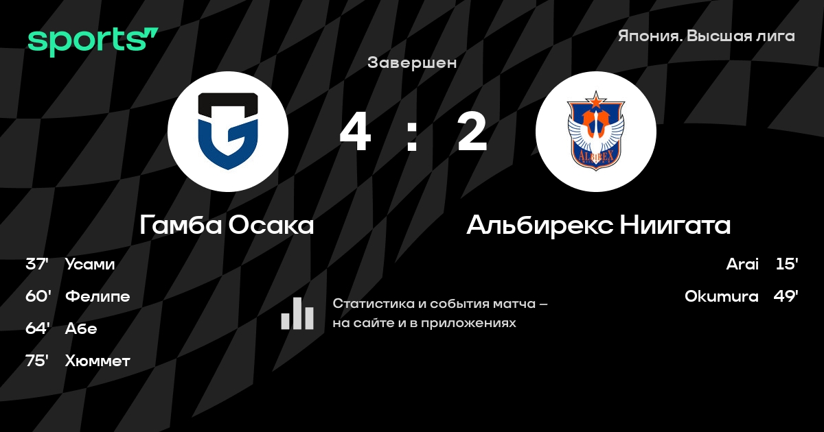 Гамба Осака – Альбирекс Ниигата: Гамба Осака не проигрывает в 5 последних матчах против этого соперника