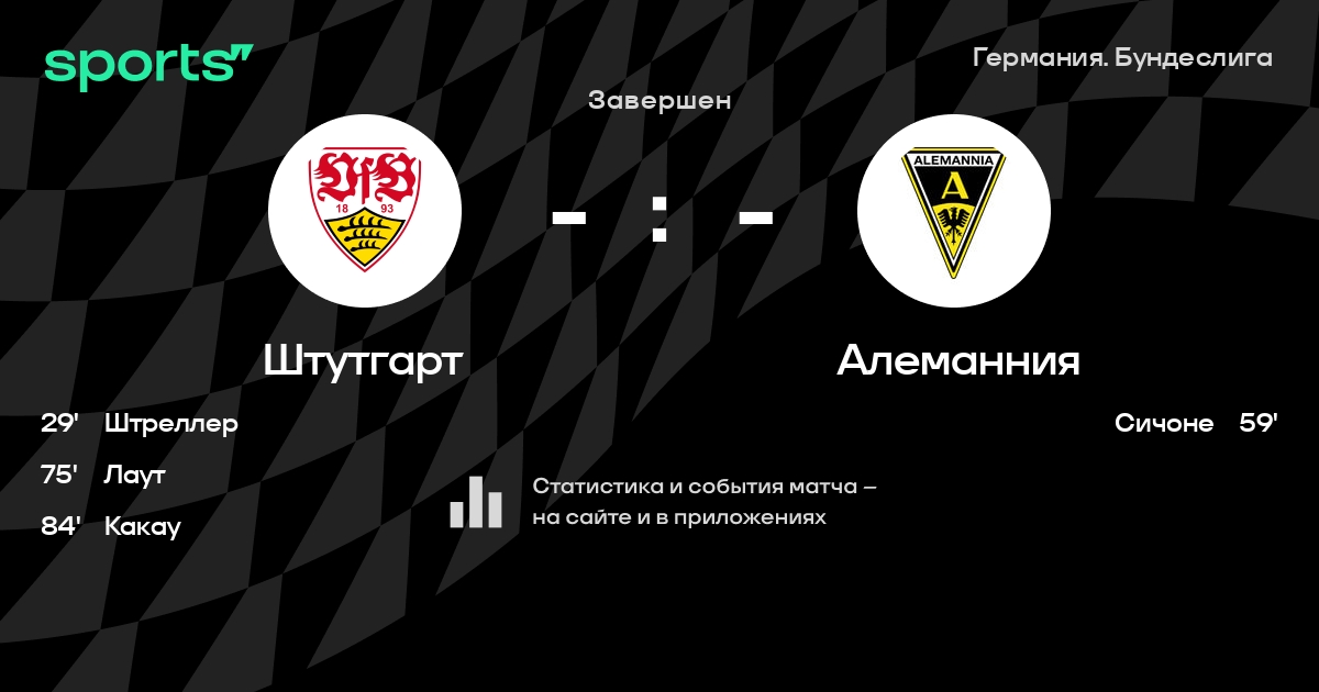 | 1 | Штутгарт | 34 | 21 | 7 | 6 | 61 | 37 | +24 | 70 | ||