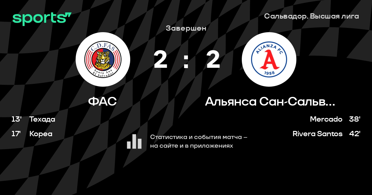 ФАС – Альянса Сан-Сальвадор: Альянса Сан-Сальвадор не проигрывает в 10 из 12 последних матчей против этого соперника