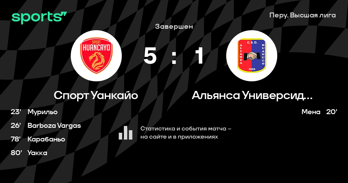 Трансляция Спорт Уанкайо - Альянса Универсидад