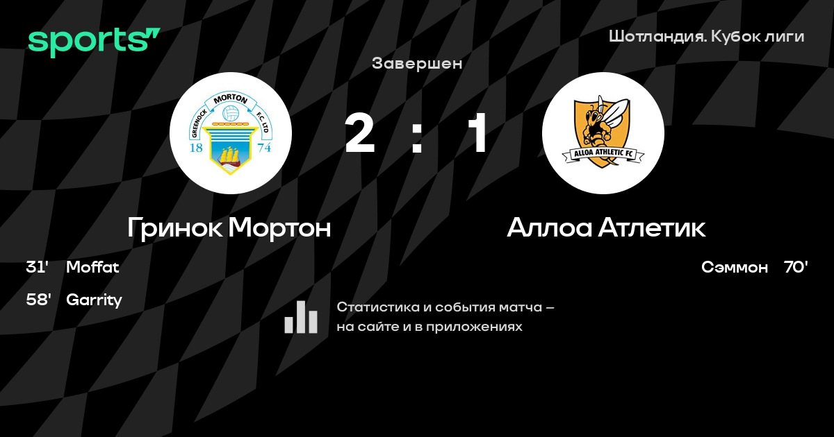 Гринок Мортон – Аллоа Атлетик: Гринок Мортон не проигрывает в 8 из 10 последних матчей против этого соперника