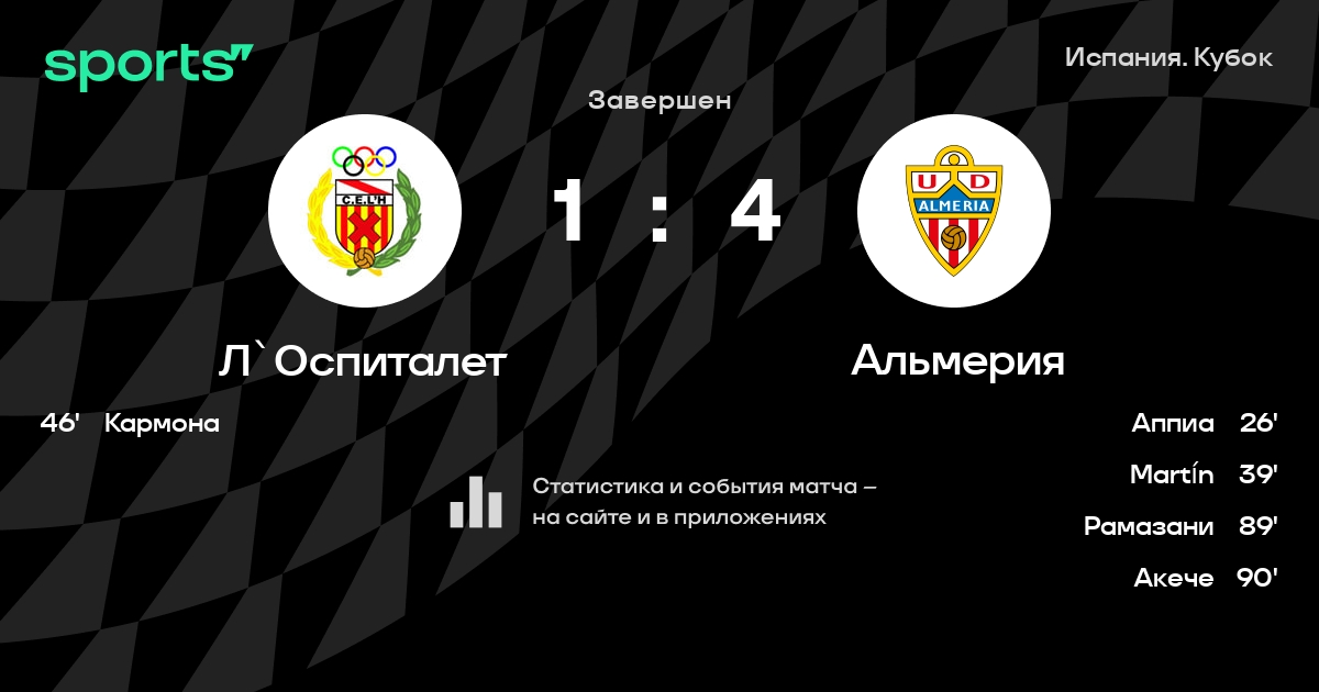 Ruiz Delgado - Vergés Comellas, Альдо Оне, Martínez Alonso, Reina Ávila - Soler Cot, Фелип, Кармона, Méndez Monroy, Aguilera Gómez - Expósito SalinasЗапасные: Aliaga Gómez, Del Chicca Dorado, Pentelei, Альфонсо, Сальва, Марк Хименес, Хоркера, Ripoll Guayta, Sarr Ndow