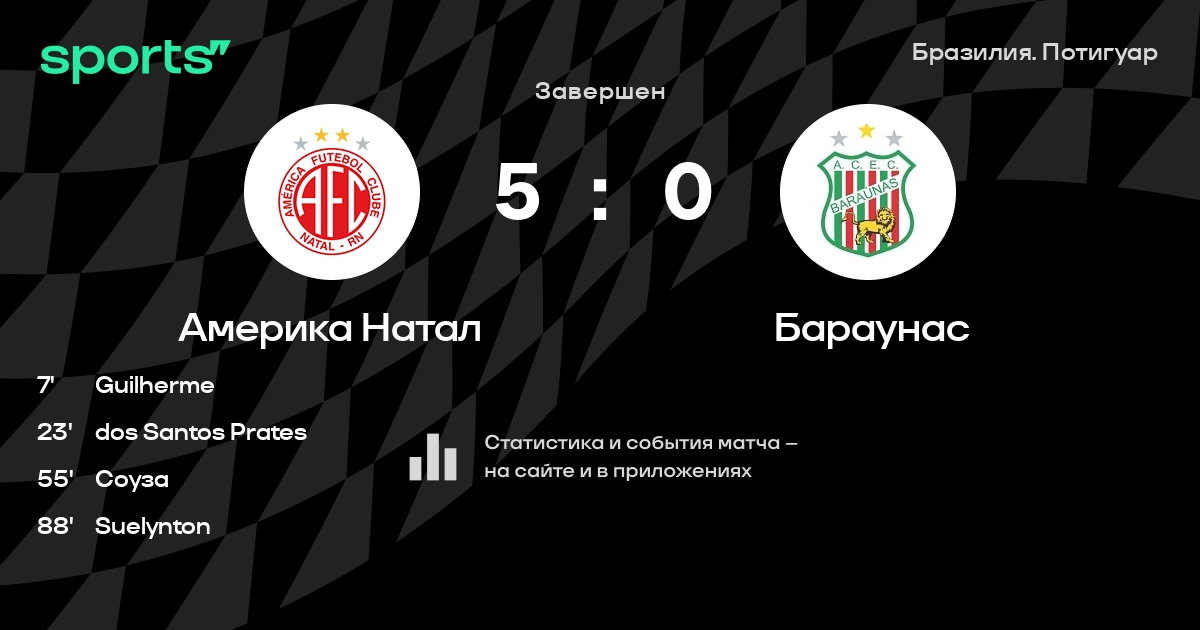 Америка Натал не проигрывает в 6 последних матчах в рамках турнира «Лига Потигуар». В 4 последних матчах в турнире «Лига Потигуар» Америка Натал обязательно забивает. В последних 5 играх Америка Натал забивает 5 голов. В последних 5 играх Америка Натал пропускает 4 голов.