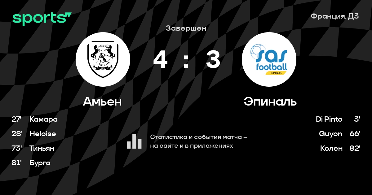 Robin - Сейду, Леонар, Guibert, Колен, Meyer, Гбеньон - Kharbouch, Guyon, Chadili, Di Pinto - Запасные: Balland, Dia, Grandemange, Ketlas, Бопесу
