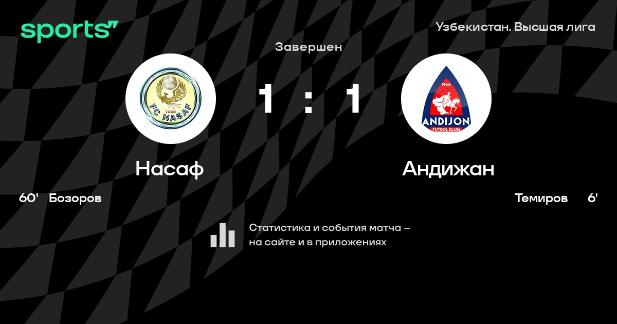 Насаф – Андижан: Андижан не проигрывает в 6 из 8 последних матчей против этого соперника