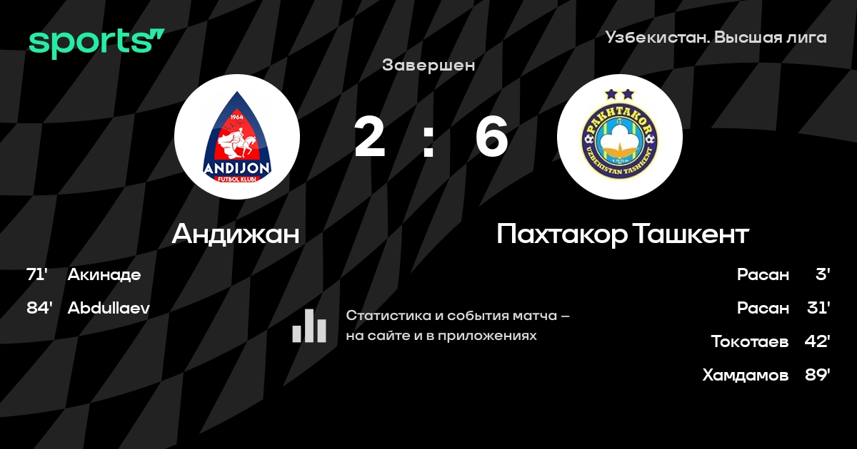 Результат прошлой игры в турнире «ПФЛ»: Машал – Андижан 1:0. После 19 туров Андижан набирает 21 очков и занимает 11 место в турнире. Лучший бомбардир команды – B. Abdumannonov: он забил 4 в 22 матчах. Андижан не может выиграть в 3 последних матчах в рамках турнира «ПФЛ». Андижан пропускает в 3 последних матчах в турнире «ПФЛ». В последних 5 играх Андижан забивает 4 голов. В последних 5 играх Андижан пропускает 5 голов.