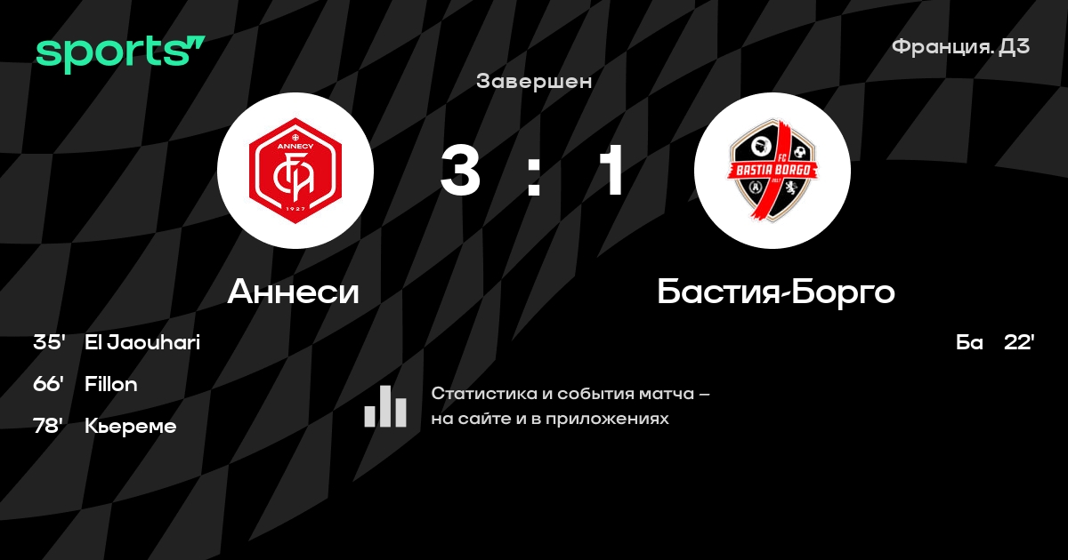 Бастия-Борго не выигрывает в 12 последних матчах в гостях в турнире «Франция. Д3»