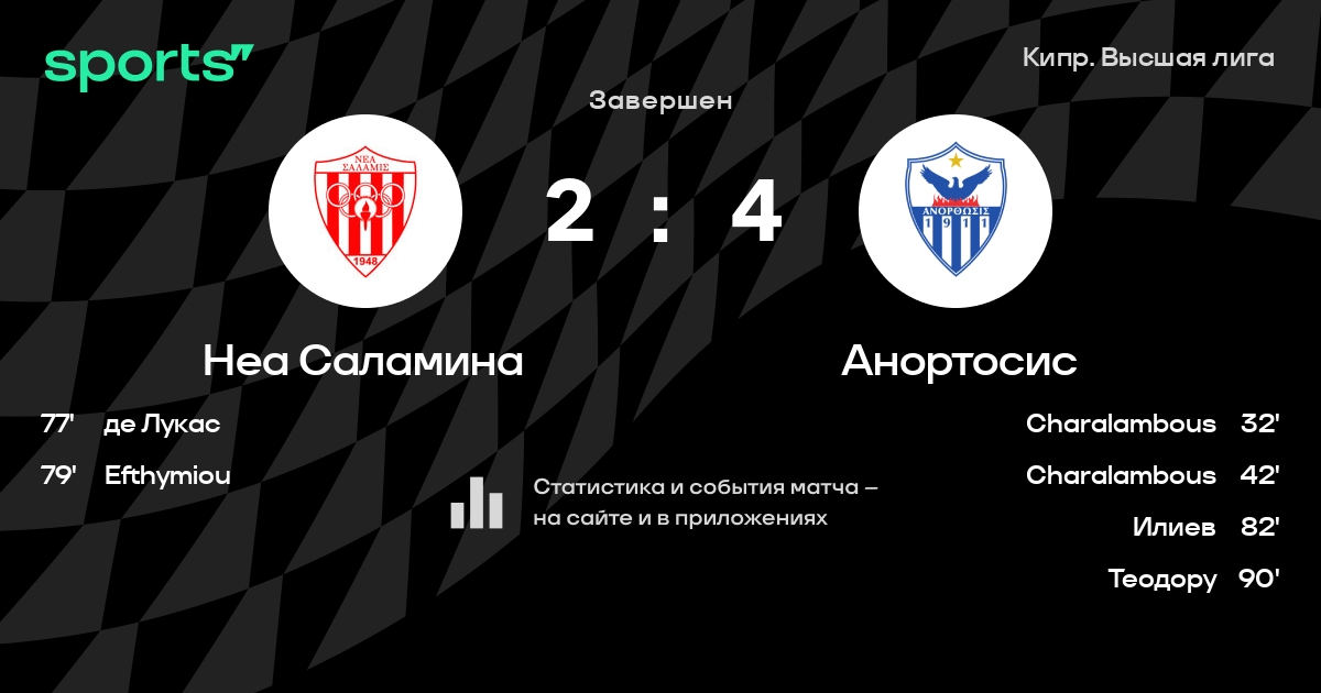 Неа Саламина – Анортосис: Анортосис забивает в 22 последних матчах против этого соперника