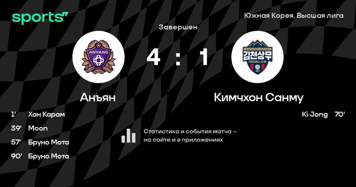 Анъян – Кимчхон Санму: Кимчхон Санму побеждает в 3 последних очных матчах