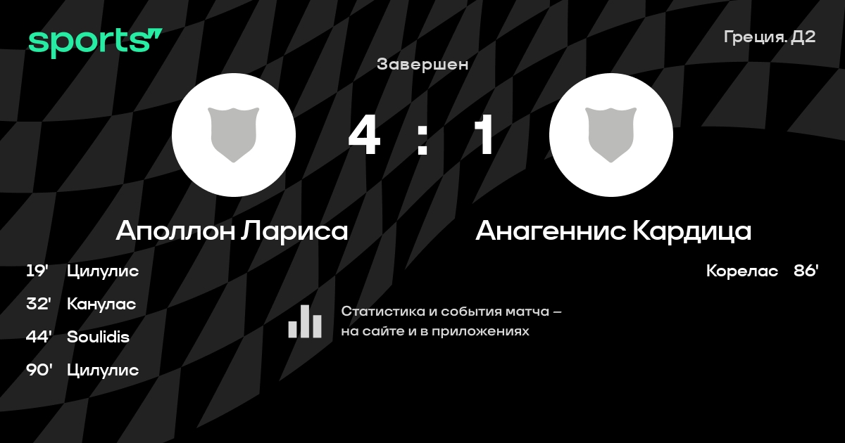 Трансляция Аполлон Лариса - Анагеннис Кардица