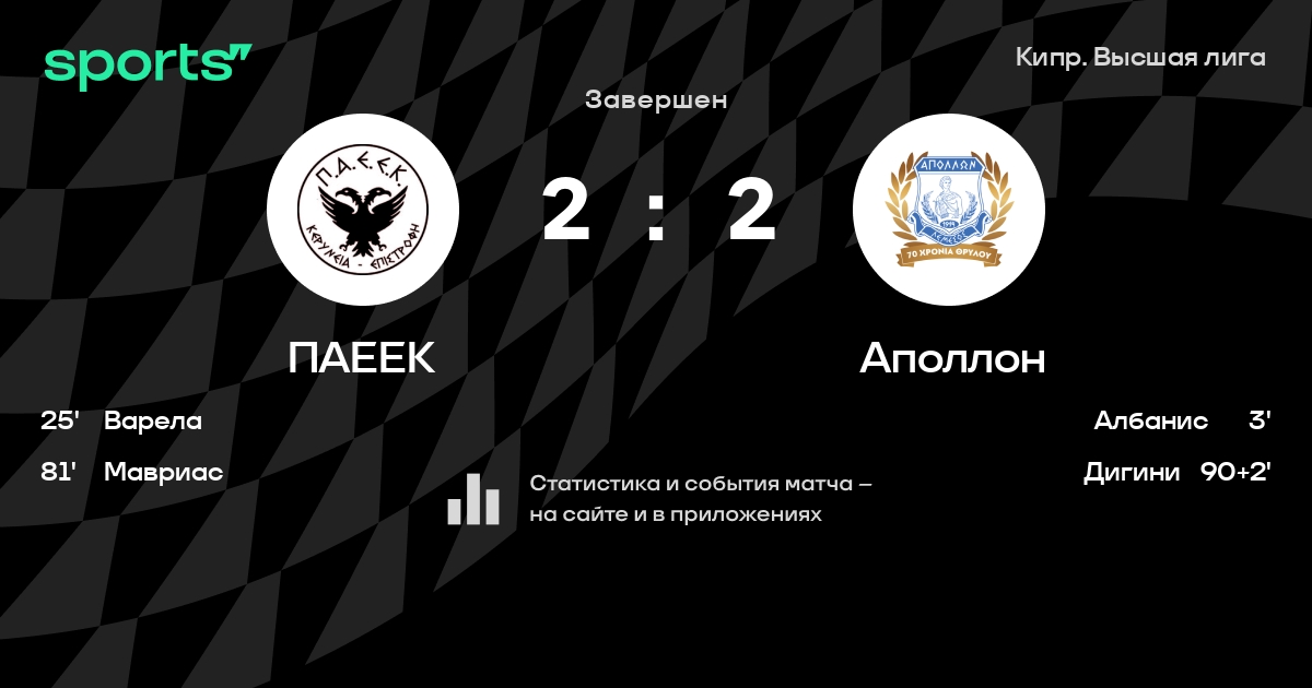 В последних 5 играх Аполлон пропускает в среднем 0.40 гола за игру