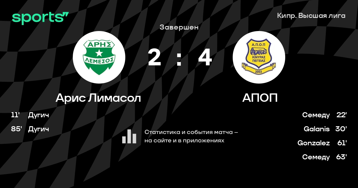 | 4 | АПОЭЛ | 26 | 16 | 7 | 3 | 46 | 18 | +28 | 55 | ||