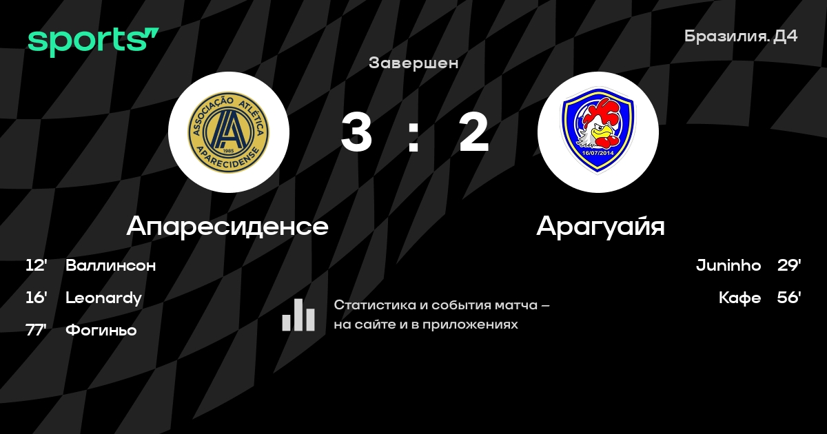Carvalho Farias - Робсон, Клейтон, Martins Ferreira Carneiro, Валлинсон - Фогиньо, de Souza Filho, Джеферсон, Козловски - Диней, РишелиЗапасные: Jacobi Junior, Santos Ferraz, Rodrigues, Gomes de Carvalho, Morais de Moura, Жарлан, Матеус Андерсон, Alves Gonçalves Leite, Nascimento Souza