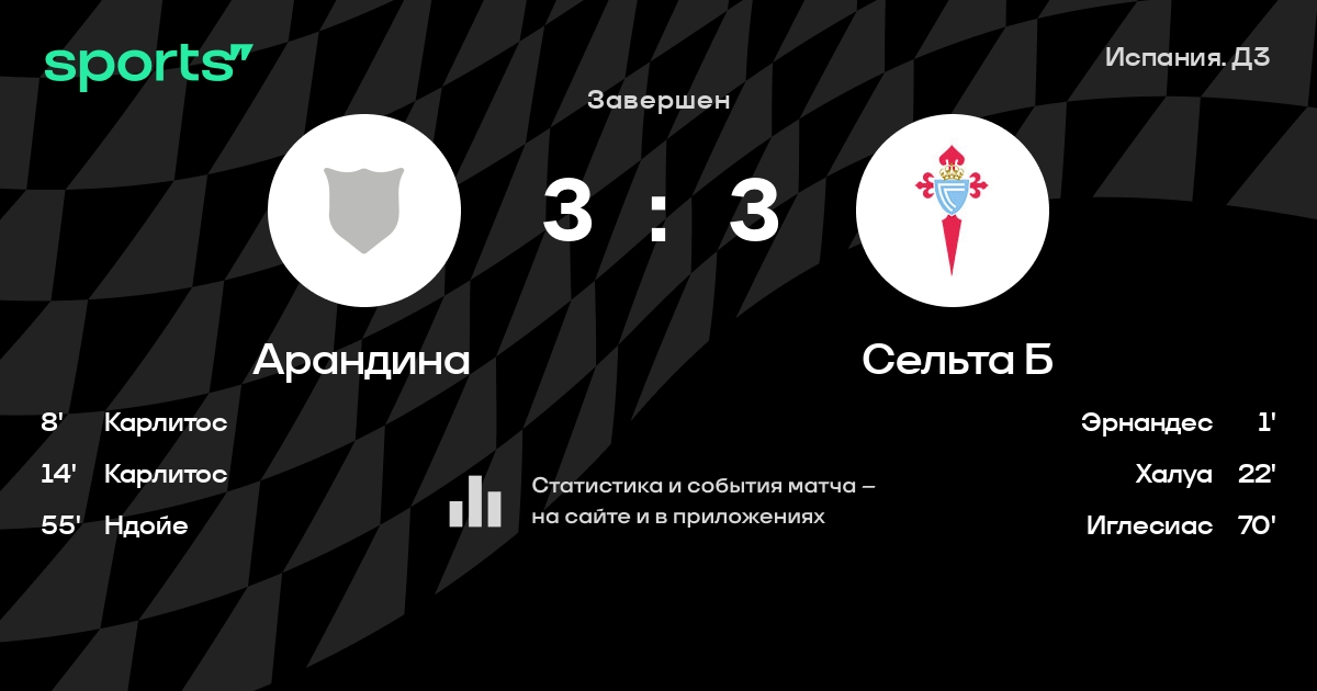 Нестор Диас - Риера, Кевин Васкес, Араухо, Аленде - Мера, Борха Фернандес, Луиш Гуштаву - Эрнандес, Иглесиас, ХалуаЗапасные: Фрага, Коста, Кастельяно, Медина, Молина, Rodríguez Vaz