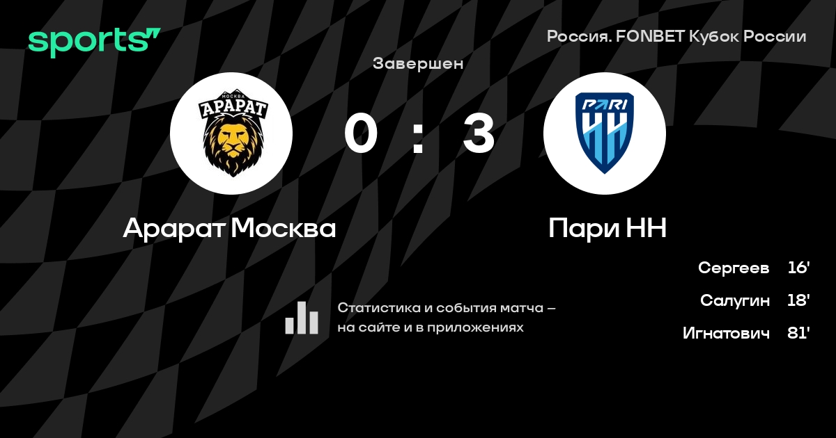 Трансляция Арарат Москва - Пари НН